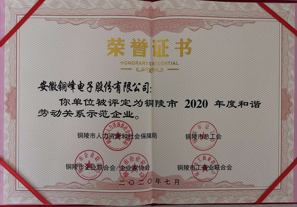 銅陵市和諧勞動關系示范企業(yè)