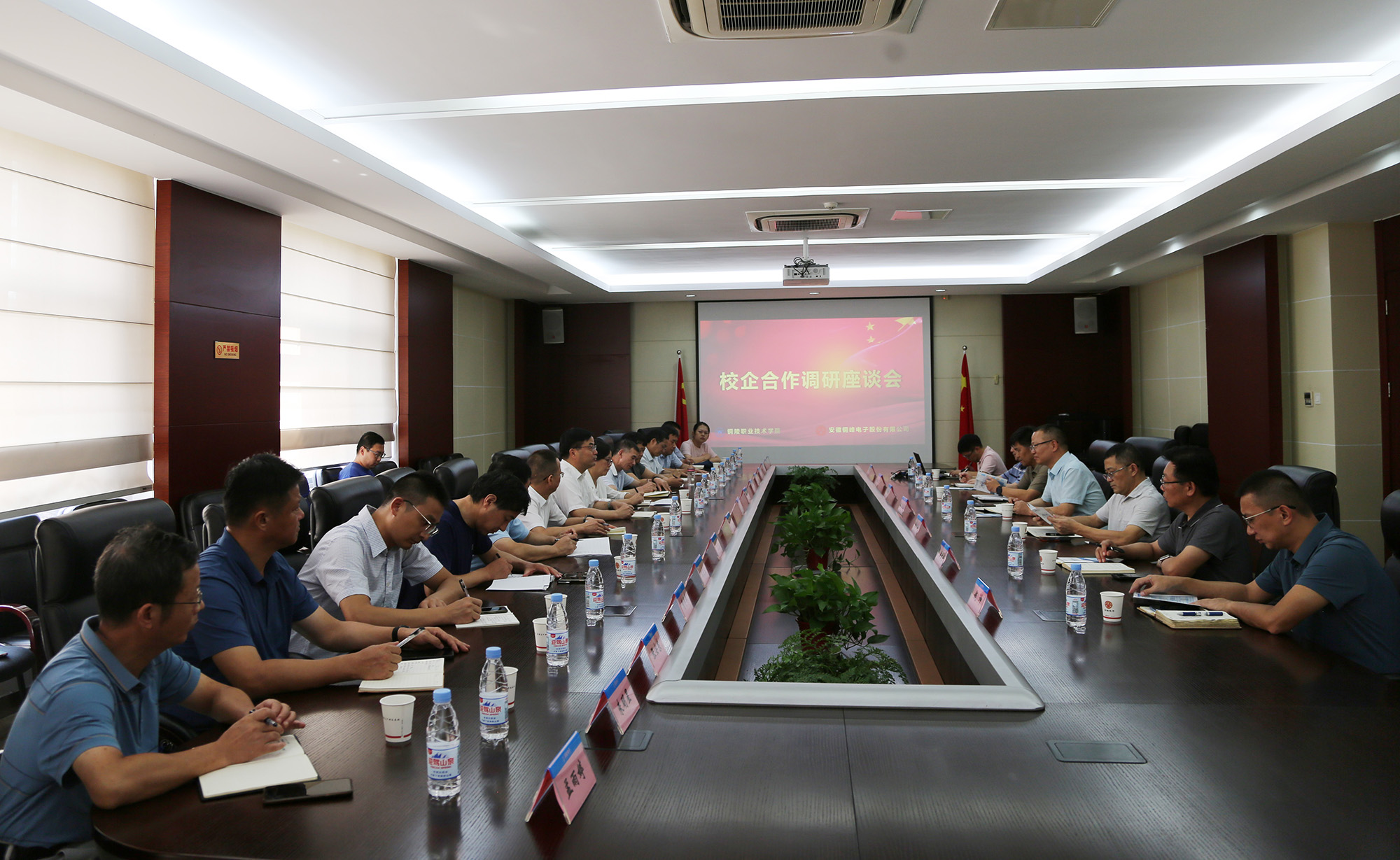 8月24日下午,銅陵職業(yè)技術(shù)學(xué)院黨委書記、市發(fā)改委主任凌勇,黨委副書記、院長凌濤,黨委副書記徐文等學(xué)院領(lǐng)導(dǎo)和相關(guān)職能處室負(fù)責(zé)人來公司開展校企合作調(diào)研座談活動。公司黨委書記、董事長黃明強(qiáng),常務(wù)副總經(jīng)理、總工程師儲松潮,副總經(jīng)理、財務(wù)總監(jiān)郭傳紅,黨委副書記、紀(jì)委書記、工會主席潘世宇及相關(guān)職能部門負(fù)責(zé)人陪同調(diào)研。