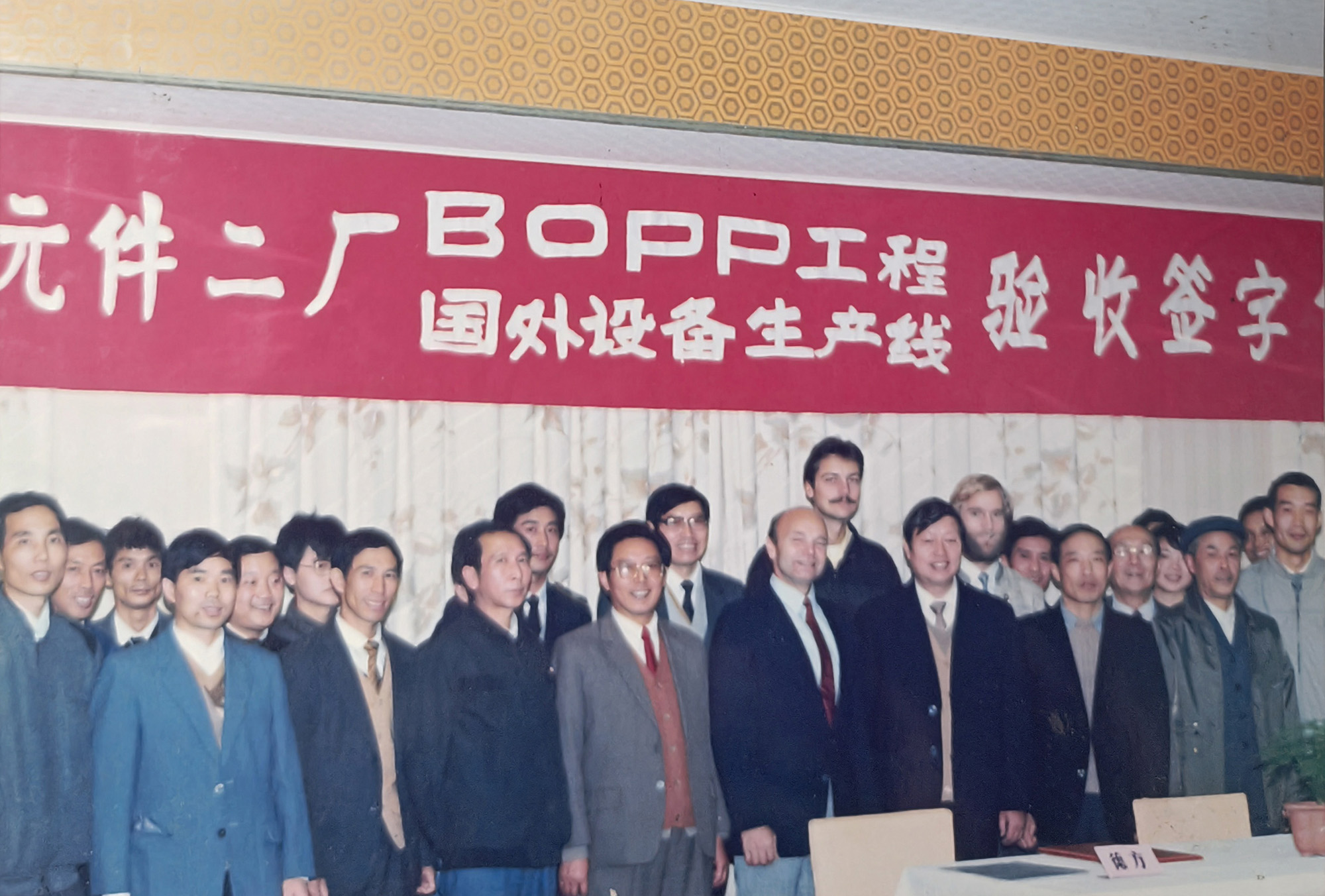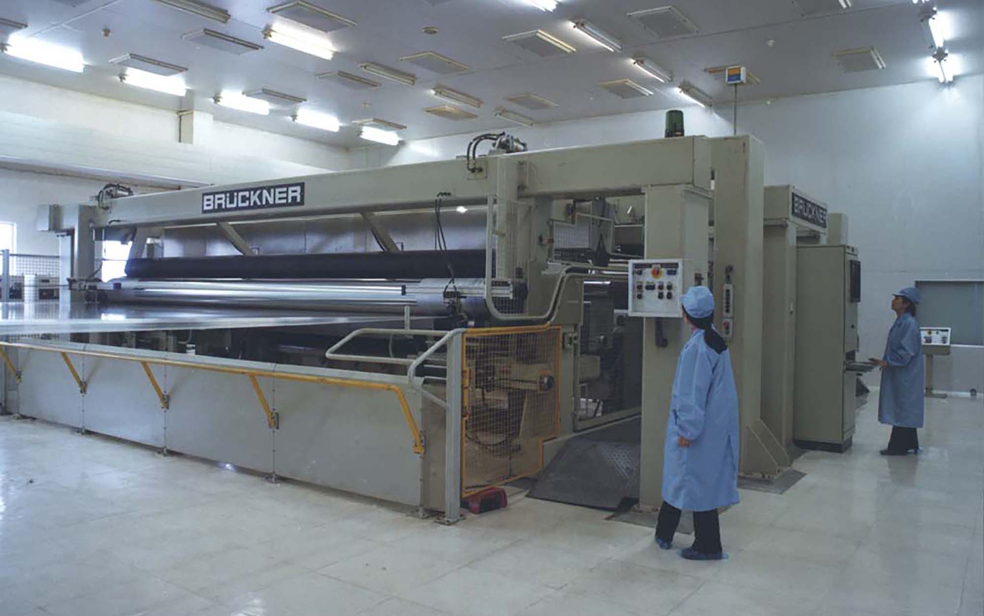 銅峰“老一線”于1989年建成投產(chǎn)。上世紀80年代,當時國內(nèi)電容器用聚丙烯膜幾乎完全依賴進口,嚴重制約了我國電容器等相關產(chǎn)業(yè)的發(fā)展。銅峰公司前身銅陵市無線電元件二廠積極響應國家需求,決定從國外引進雙向拉伸電容器用聚丙烯膜生產(chǎn)線。1985年項目啟動,經(jīng)過一系列籌備工作,1986年獲得國家計委批準立項,并被列入國家 “七五” 機械電子工業(yè)重點技改項目。1988年,主線和相關輔助設備成功引進。經(jīng)過一年多的緊張建設,1989年生產(chǎn)線正式投產(chǎn)?!袄弦痪€”的建成投產(chǎn),是銅峰發(fā)展史上具有重要意義的轉(zhuǎn)折點。該線加速了銅峰公司產(chǎn)品結(jié)構調(diào)整和轉(zhuǎn)型步伐,并由此形成了全國唯一的“電工三膜”(電容薄膜、金屬化膜和薄膜電容器)一條龍的生產(chǎn)格局,使企業(yè)的經(jīng)濟規(guī)模和技術水平躍上一個新臺階。