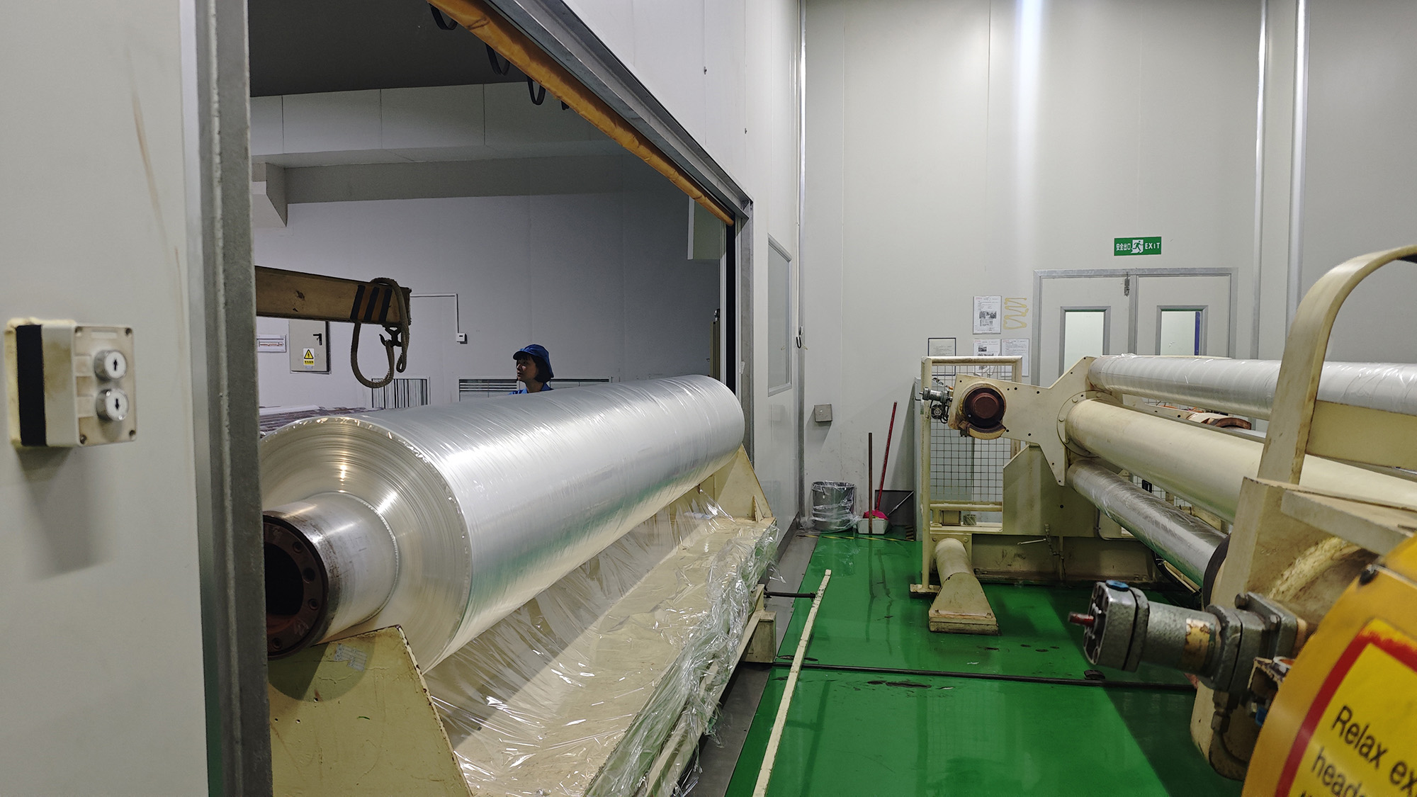 圖為BOPP-1生產(chǎn)線正式退役前最后一卷薄膜產(chǎn)品下線