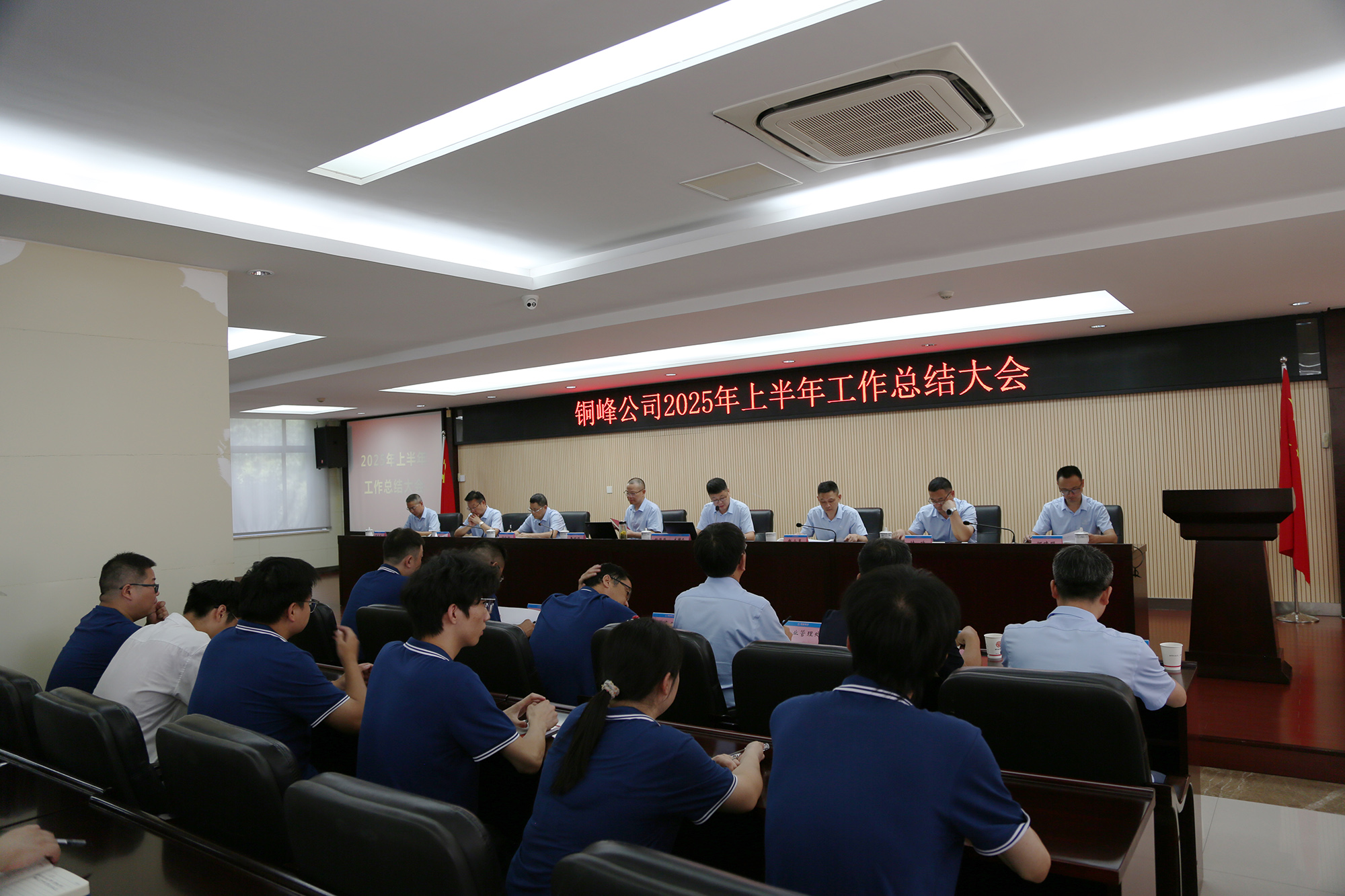 8月8日下午,公司在辦公樓二樓職教室隆重召開(kāi)2025年上半年工作總結(jié)大會(huì)。公司黨政領(lǐng)導(dǎo)班子成員、各生產(chǎn)經(jīng)營(yíng)單位車間主任和職能部門主管級(jí)以上人員、部分職工代表和新進(jìn)大學(xué)生代表等參加會(huì)議。會(huì)議認(rèn)真復(fù)盤上半年運(yùn)營(yíng)成果,深入分析當(dāng)前經(jīng)營(yíng)形勢(shì),精心謀劃下半年重點(diǎn)工作。公司黨委書(shū)記、董事長(zhǎng)黃明強(qiáng)出席會(huì)議并作總結(jié)講話,對(duì)公司上半年工作進(jìn)行總體分析,對(duì)下半年工作提出要求??偨?jīng)理鮑俊華主持會(huì)議,并對(duì)公司各單位和部門的具體工作進(jìn)行點(diǎn)評(píng)。公司各生產(chǎn)單位和相關(guān)職能部門分別匯報(bào)了上半年主要工作及下半年工作計(jì)劃。